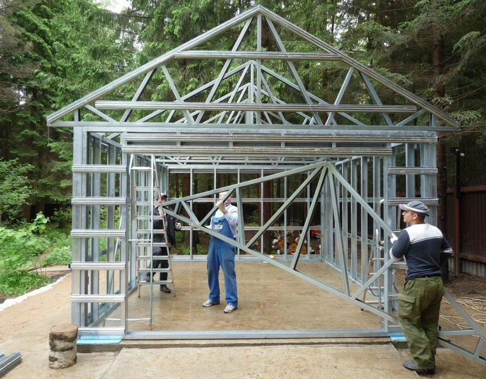 ЛСТК позволяет реализовать разнообразные архитектурные решения. Можно выбрать любой размер и конфигурацию гаража, а также дополнительно оборудовать его окнами, дверями и системами вентиляции.